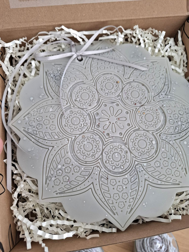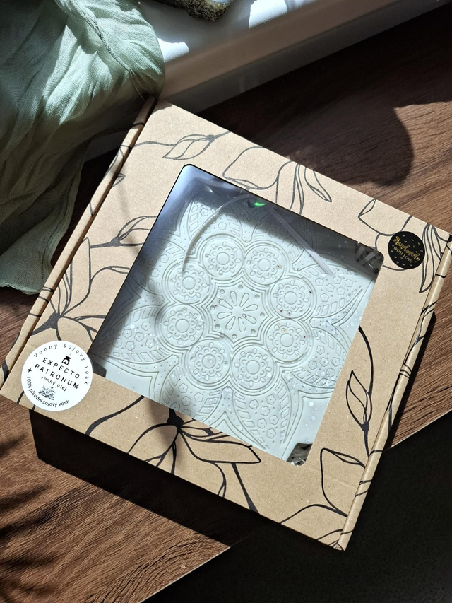 Sójový vonný vosk v podobě velké mandaly, největší, kterou z vosku odlévám. Tyto mandaly jsou skutečnou ozdobou domácnosti, dotvoří a provoní Váš prostor a díky své velikosti vydrží vonět dlouhé týdny až měsíce. Každá mandala je jiná. Vosk s krásnou a dlouhotrvající vůní s vonnými oleji.