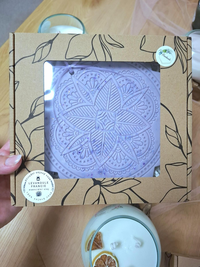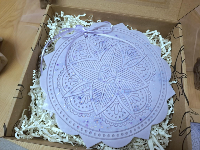 Sójový vonný vosk v podobě velké mandaly, největší, kterou z vosku odlévám. Tyto mandaly jsou skutečnou ozdobou domácnosti, dotvoří a provoní Váš prostor a díky své velikosti vydrží vonět dlouhé týdny až měsíce. Každá mandala je jiná. Vosk s krásnou a dlouhotrvající vůní s esenciálním olejem.